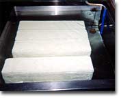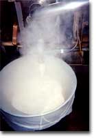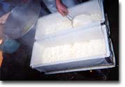 型に入れて固め、固まったら豆腐を水槽に取り出し、水にさらして切り分ける