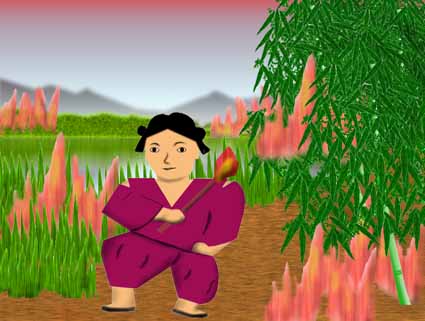 A 「バーン、バーン、ポーン、ポーン」「ボー、ボー、ゴー、ゴー」とたちまち火の手は燃え上がりその勢いはすさまじかった。すると突然そのとき・・・
